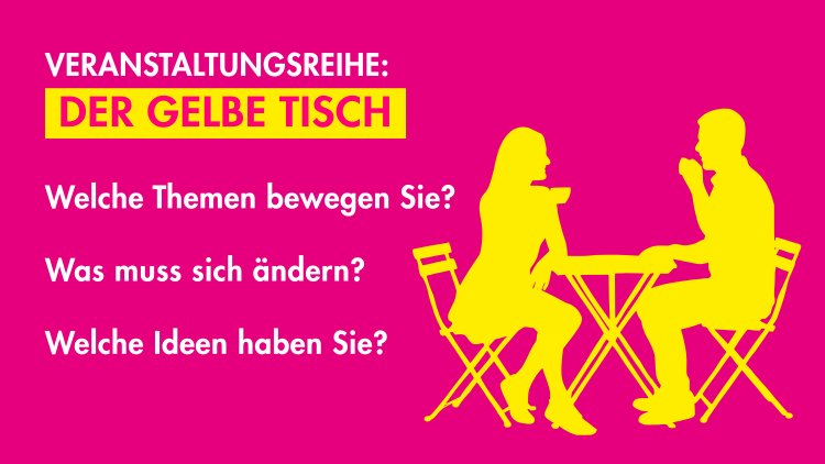 Mit unserer Veranstaltungsreihe „Der gelbe Tisch“ schaffen wir einen Raum für den offenen Austausch zu kommunalpolitischen Themen, die Pullach bewegen. Bürgerinnen und Bürger sind herzlich eingeladen, mit uns und unseren Gästen ins Gespräch zu kommen – sachlich, lösungsorientiert und auf Augenhöhe.